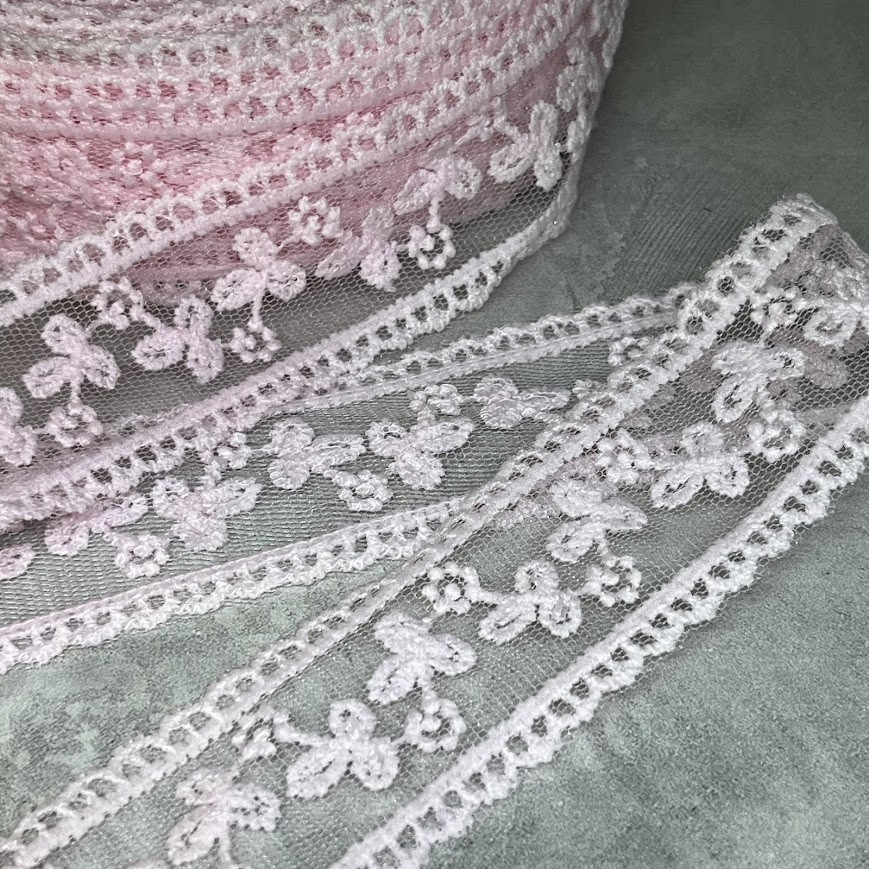 Фатинова стрічка (фатин) з вишивкою, ширина 3,5 см, рожевий, метр, Рожевий