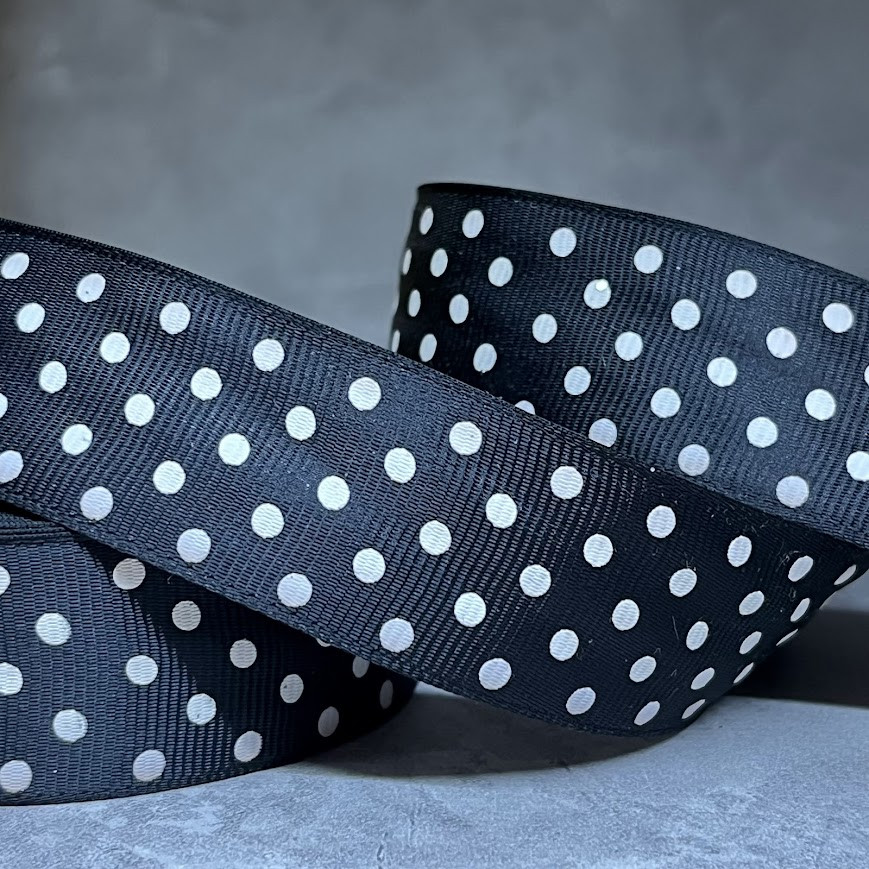 Репсова стрічка 2,5 см, у горох, колір чорний, арт 011755, 1 метр, Чорний