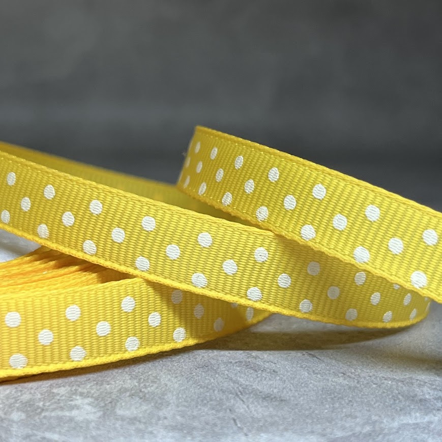Репсова стрічка в горох 1 см, колір жовтий, арт 011622, 1 метр, Жовтий
