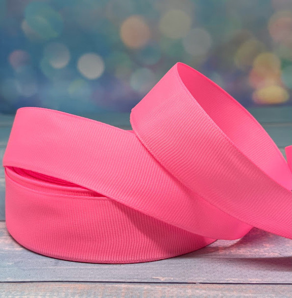 Репсова стрічка 2,5 см, колір-яр рожевий (Hot pink), метр, Рожевий