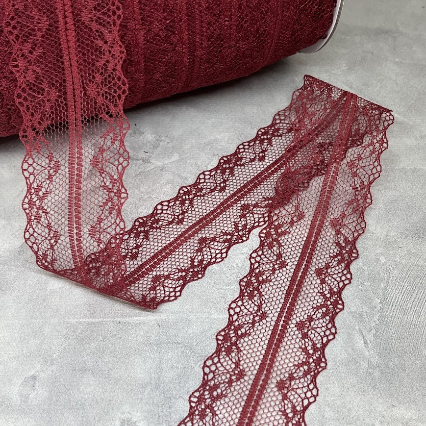 Мереживо 4 см "Адель", колір -бордовий, метр, Бордовий