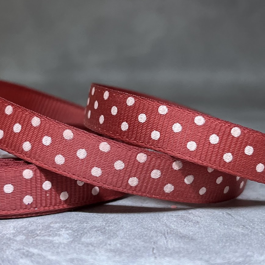Репсова стрічка у горох 1 см, колір- коричнево-червоний, арт 017660, 1 метр, Різнокольоровий