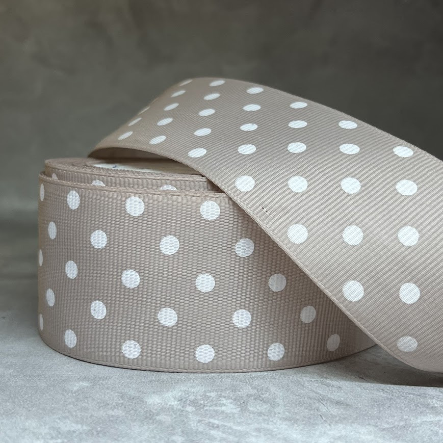 Репсовая лента в горох 4 см, цвет- кава з молоком, арт 017663, 1 метр
