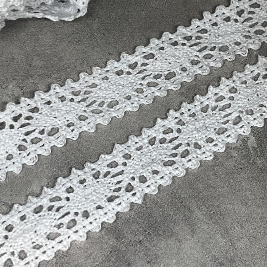 Бавовняне мереживо 2,2 см, колір- білий, арт 018238, 1 метр, Білий
